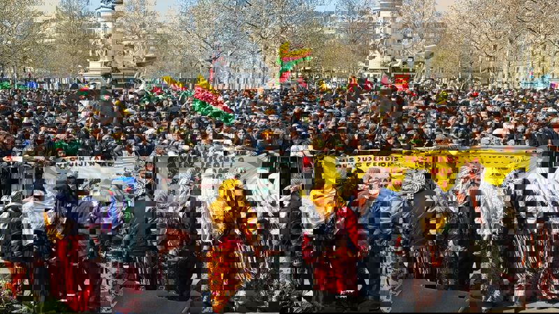 Fransa'nın başkenti Paris'te bu yıl büyük bir coşkuyla kutlanan Newroz, binlerce kişinin katılımıyla République Meydanı'nda gerçekleşti. Öğle saatlerinde başlayan kutlamalar, gün boyunca süren konuşmalar, müzik dinletileri, halaylar ve sloganlarla adeta bir halk şölenine dönüştü.