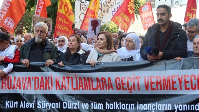 "Bugün Rojava'da, Suriye'de tekrar edilen ezberler Türkiye'ye çok şey kaybettirdi. Daha fazla kaybetmeyelim" diyen Ayşegül Doğan, şunları söyledi: "Bir yandan Kürtlere yönelik düşmanca politikalar yürütüp, diğer yandan Kürtlerle birlikte yürüyen devrimcilere, sosyalistlere baskı uygulamak bu ülkeye barış getirmez. DEM Parti olarak yapılanı net biçimde görüyoruz ve uyarıyoruz: Bu yol çok denendi. Bu yolun sonunda yalnızca acı, kıyım, katliam ve gözyaşı var. Onurlu ve kalıcı barış aynı yöntemlerle sağlanamaz. Demokratik çözüm, ancak demokratik siyasetin önü açılarak mümkündür. Demokratik muhalefetten korkmayan ülkelerin demokrasisi güçlüdür. Eğer demokratik muhalefetin güçlenmesinden korkuluyorsa, burada samimi bir demokratikleşme iradesinden söz edilemez."