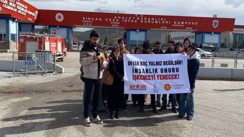 Rojava eylemleri sırasında "Türk bayrağını indirdiği" iddiasıyla işkence yapılan Diyar Koç için Sincan Hapishanesi'nin önünde eylem yapıldı, işkenceci faillerin cezalandırılması istendi. Devrimci gençler, "Barış iddiası, işkencenin gölgesinde inandırıcılığını yitiriyor" dedi.
