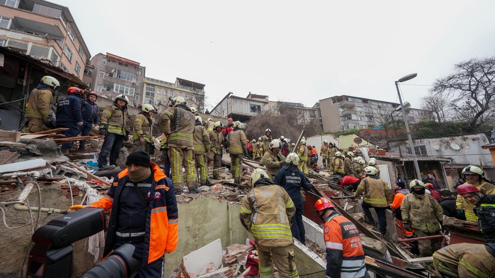 İstanbul'un Fatih ilçesinde meydana gelen patlama sonrası bitişik nizamda bulunan iki bina çöktü.