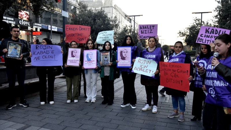 Esenyurt Kadın Platformu, Tabela Meydanında Rojin'e ne oldu sorusunu yineledi. "Erkek egemen sisteme vur gitsin, bu çile bitsin", "Kadın cinayetleri politiktir", "Rojin Kabaiş'e ne oldu", "Erkek-devlet şiddetine son", "Koruma, aklama, failleri yargıla", "Adalet biziz, susmuyoruz" dövizleri ve Rojin Kabaiş'in fotoğraflarını taşıyan kadınların eylemine amca Ahmet Kabaiş de destek verdi.