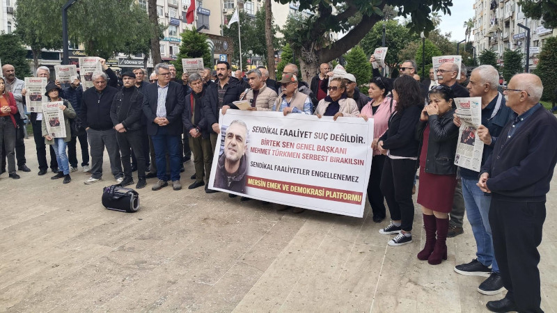 Mersin Emek ve Demokrasi Platformu, BİRTEK-SEN Genel Başkanı Mehmet Türkmen'in tutuklanmasınn, örgütlenme özgürlüğüne müdahale olduğunu vurgulayarak, "Türkmen'in biran önce bırakılması ailesi ve biz mücadele arkadaşlarının arasına yeniden dönmesi çağrısını yapıyoruz" dedi.