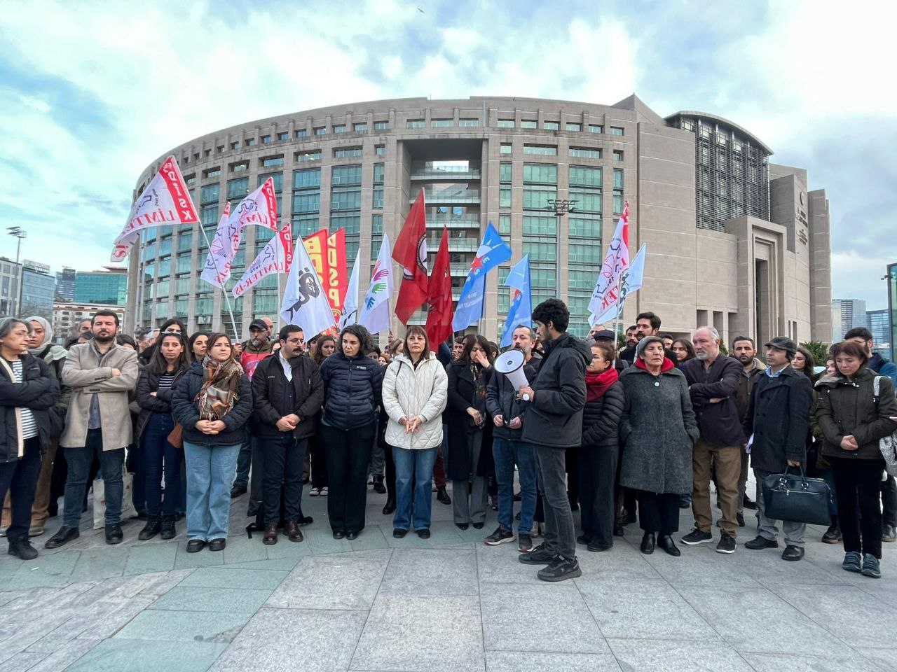 Tutsak edilen  sosyalistlerin avukatları, ESP ve devrimci kurumların katılımıyla İstanbul Adliyesi önünde açıklama yapıldı.