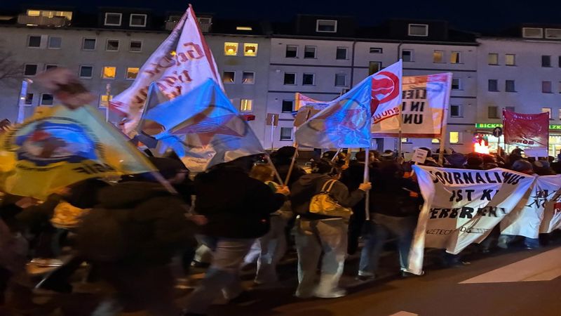 Köln'de Açık Antifaşist Toplantı (OAT), Sınıf Mücadeleci Örgütler Federasyonu (FKO), Young Struggle, ZORA, AGİF'in de aralarında olduğu örgüt ve grupların katıldığı eylem, konuşmalarla başladı.