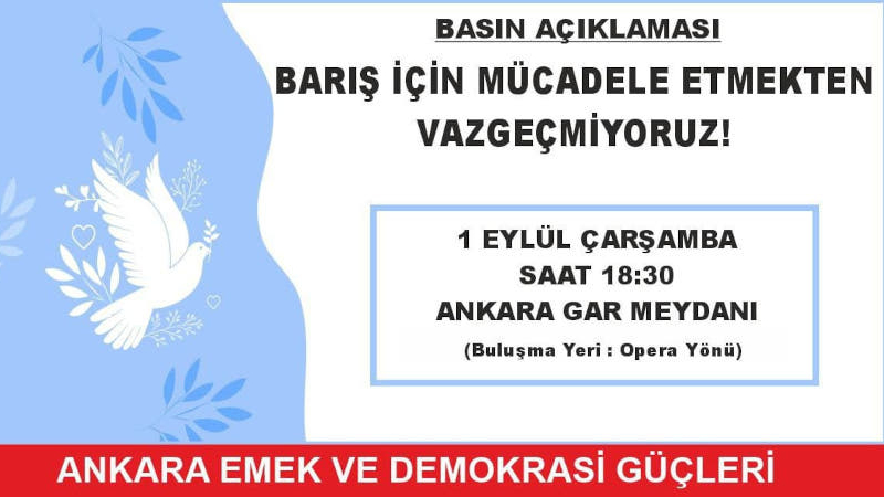 1 Eylül mitingine valilik engeli: Ankara Gar Meydanı'na çağrı