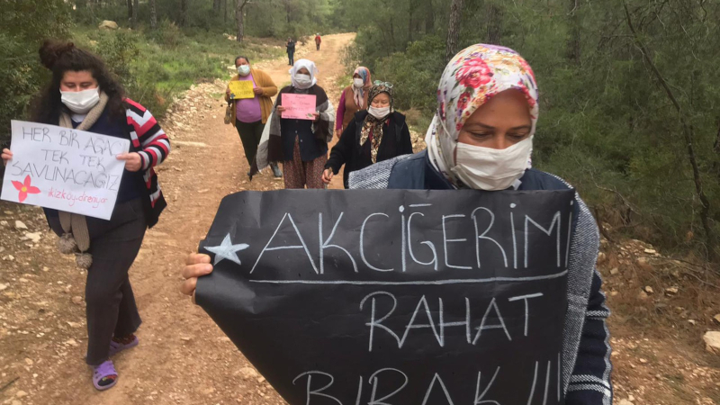 Akbelen'de, yangınla mücadeleye gelen ekibe ağaç kıyımı yaptırılıyor