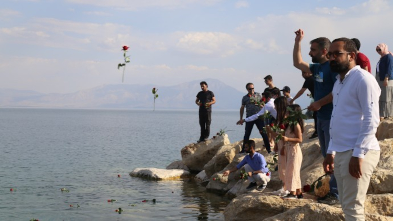 61 mülteci Van Gölü'ne atılan karanfillerle anıldı