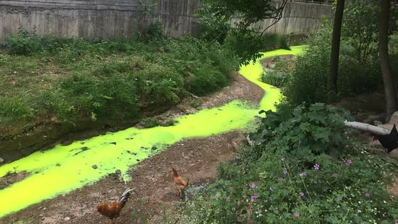 Kimyasal atık dereyi fosforlu yeşile boyadı