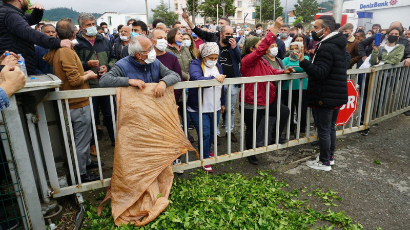 Kemalpaşa halkı topladıkları çayları Çaykur önüne döktü