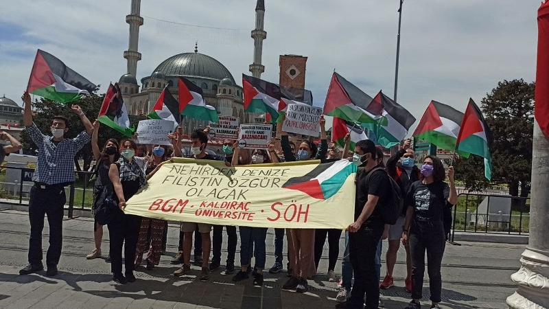 Polis saldırısı devrimci gençleri engelleyemedi: Taksim'de Filistin'le dayanışma eylemi