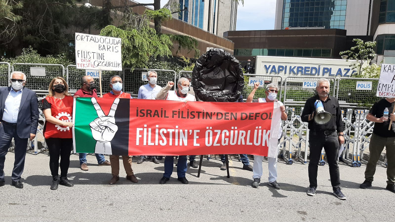 DİSK'e bağlı sendikalar İsrail konsolosluğu önüne siyah çelenk bıraktı