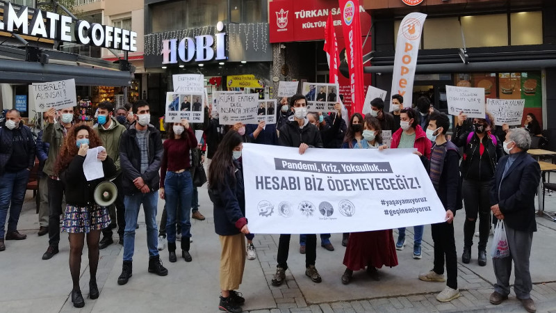 İzmir'de 'hesabı biz ödemeyeceğiz' eylemi