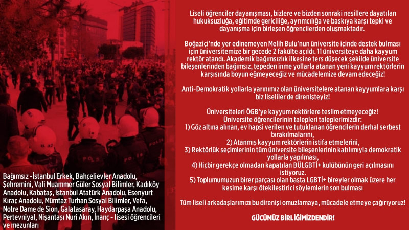Liseli Öğrenciler Dayanışması'ndan Boğaziçililerin talepleri için mücadele çağrısı