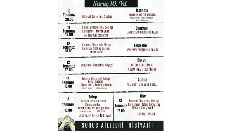 Kent kent Suruç belgeseli ve söyleşisi takvimi