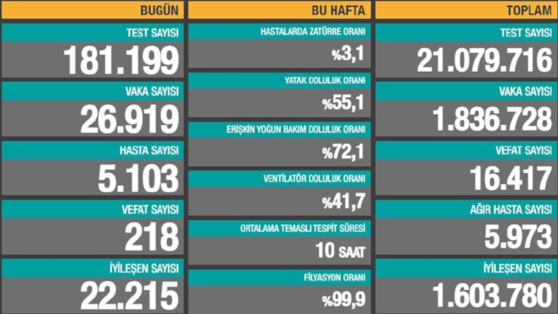 Sağlık Bakanlığı: Covid-19 nedeniyle 218 kişi yaşamını yitirdi