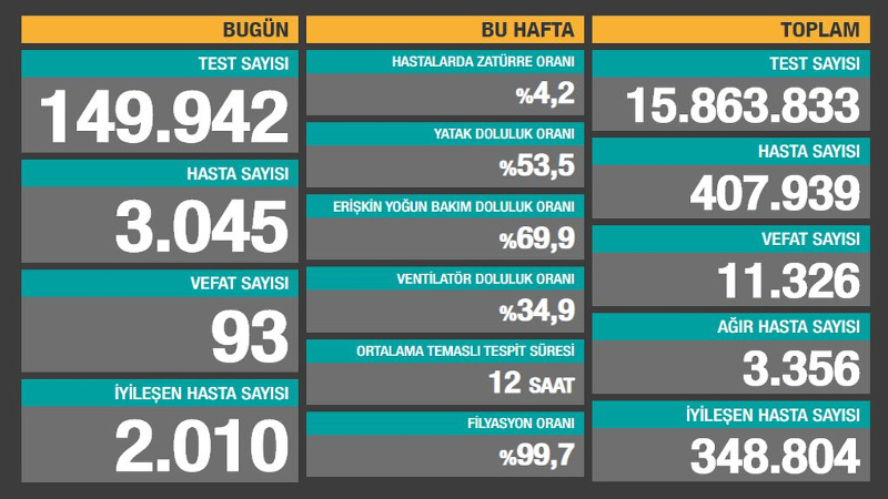 Son 24 saatte 93 can kaybı, 3.045 yeni hasta