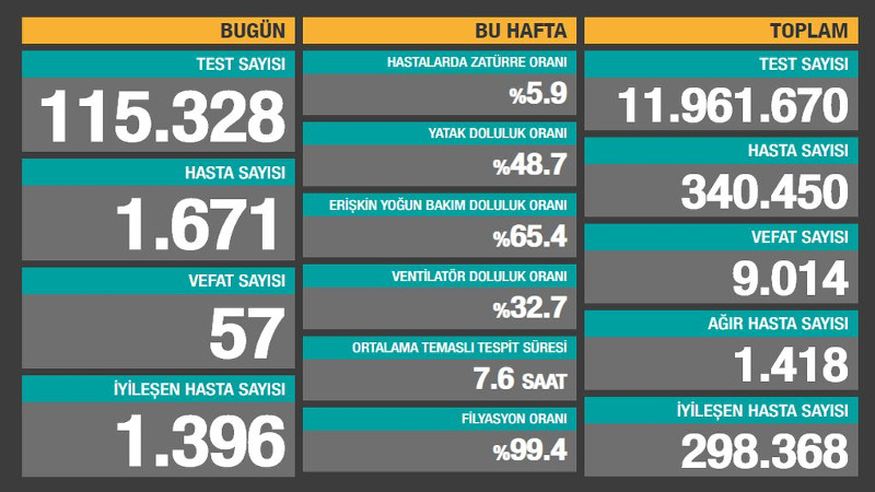 Son 24 saatte 1.671 yeni hasta, 57 can kaybı