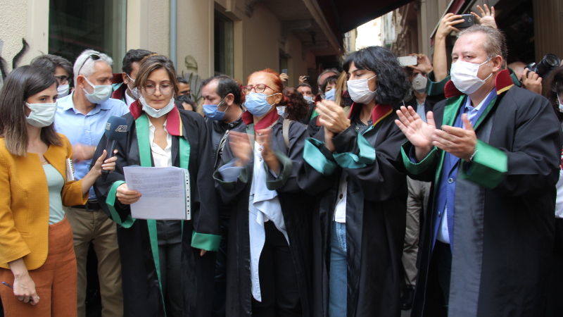 Avukatlar engellemeye rağmen baro önünde açıklama yaptı