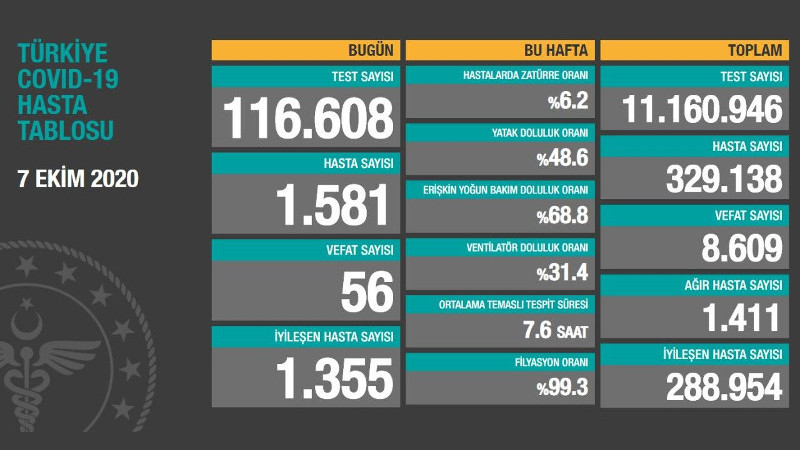Son 24 saatte Covid-19'dan 56 kişi yaşamını yitirdi