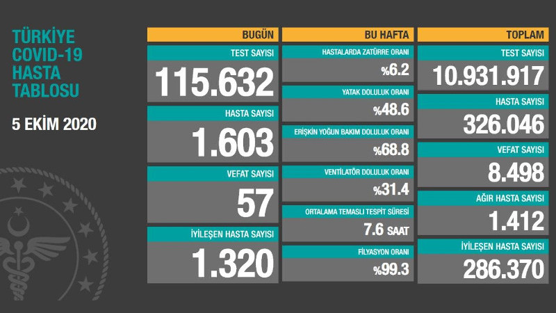 Son 24 saatte Covid-19'dan 57 kişi yaşamını yitirdi