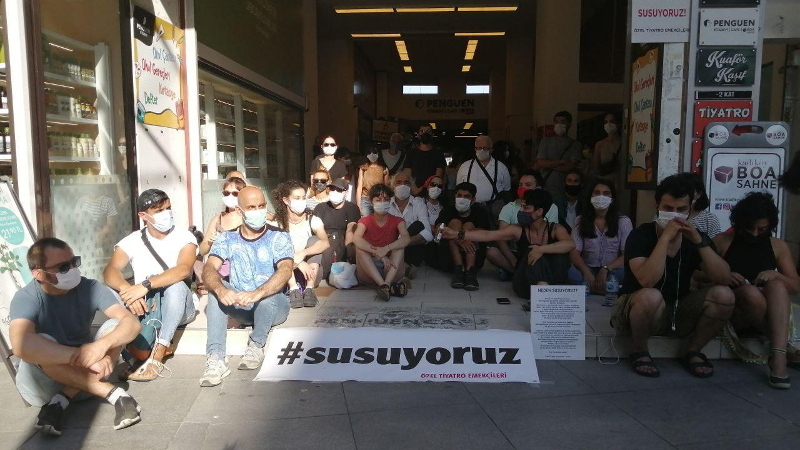 Özel tiyatro emekçileri, Boa Sahnesi önünde mücadele çağrısı yaptı