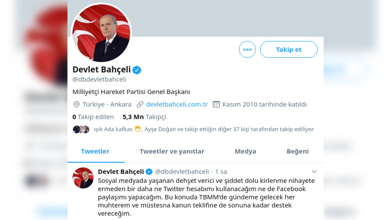 Bahçeli Twitterdan duyurdu: Sosyal medya paylaşımlarımı durduruyorum