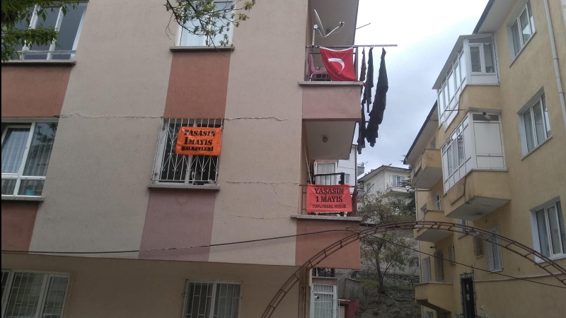 Evin balkonuna asılan 'Yaşasın 1 Mayıs' afişine polis müdahalesi