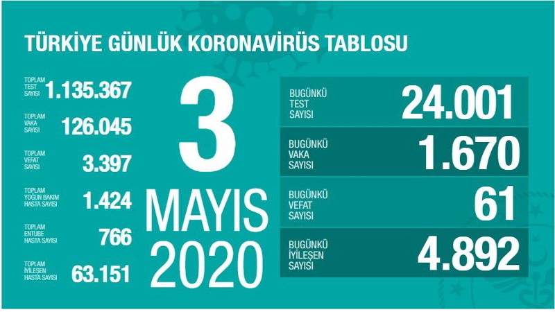 Türkiye'de son 24 saatte Covid-19'dan 61 can kaybı