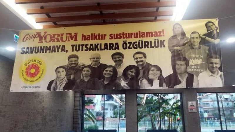 Eğitim-Sen kongresinde Grup Yorum pankartına engel