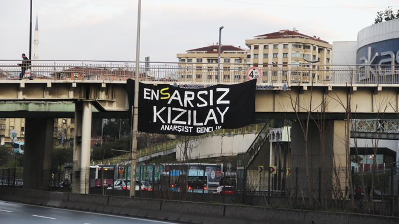 Anarşist Gençlik Ünalan Köprüsü'ne 'ENsARSIZ Kızılay' pankartı astı