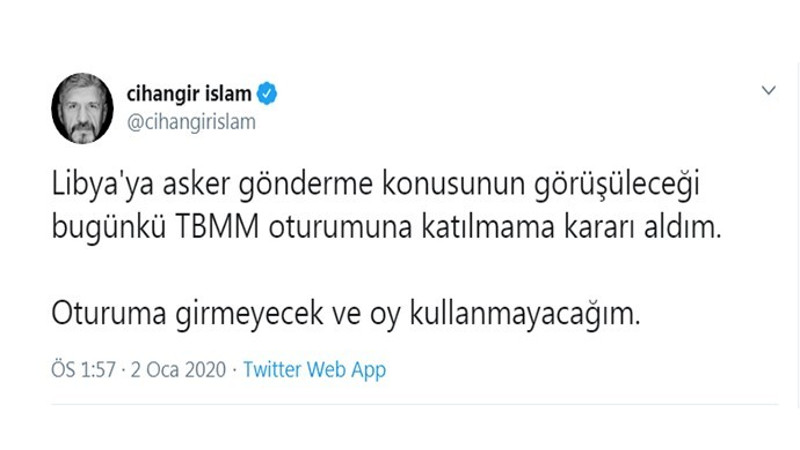 Cihangir İslam tezkereye 'evet' diyen partisinin aksine boykot kararı aldı