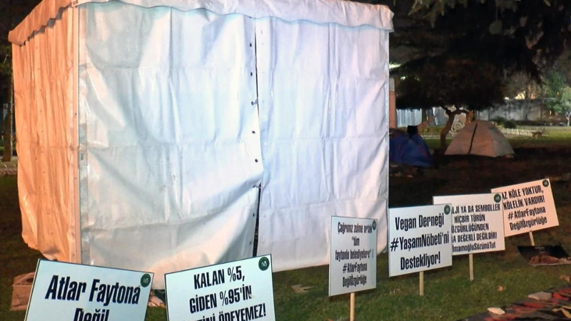 Yeni yıla İBB önündeki çadırlarda girdiler: Atlı faytonlar kaldırılsın