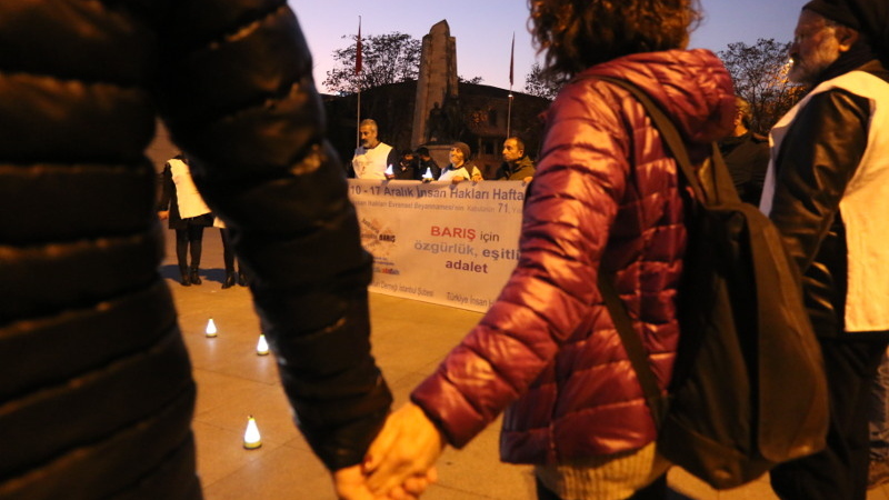 Beşiktaş'ta insan hakları için barış zinciri oluşturuldu