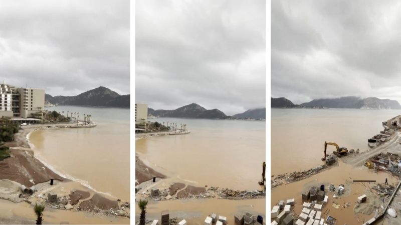 Marmaris'te yargı kararına rağmen devam eden şantiye çevreyi kirletmeye devam ediyor