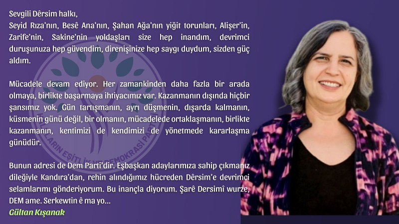 Kışanak'tan Dersim halkına çağrı: Birlikte kazanalım