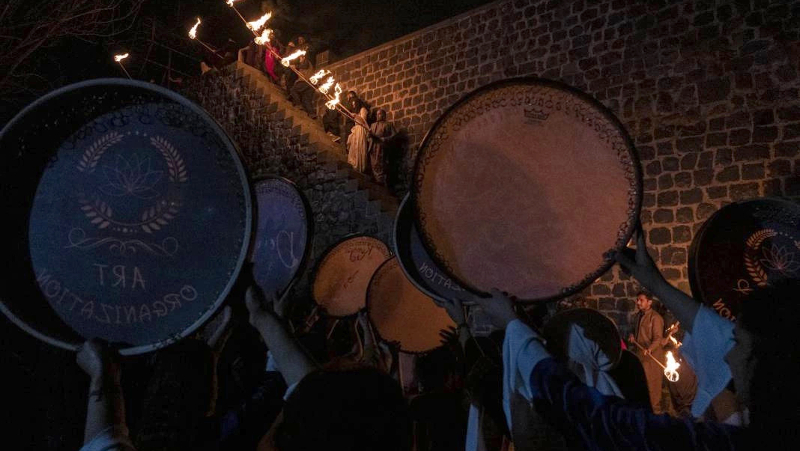 Diyarbakır surlarında 75 meşale yakılarak Newroz kutlandı
