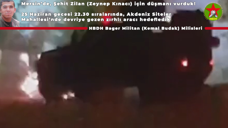 KBDH Zeynep Kınacı milislerinden Mersin'de sabotaj eylemi
