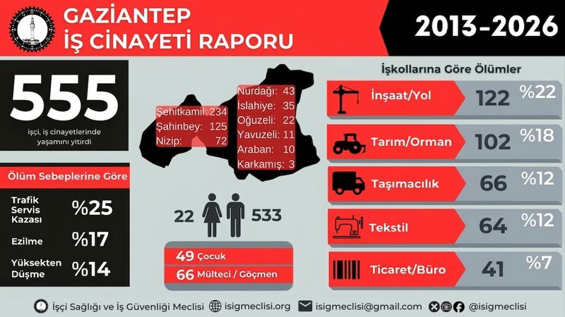 Antep'te 13 yılın bilançosu ağır: En az 555 işçi çalışırken can verdi