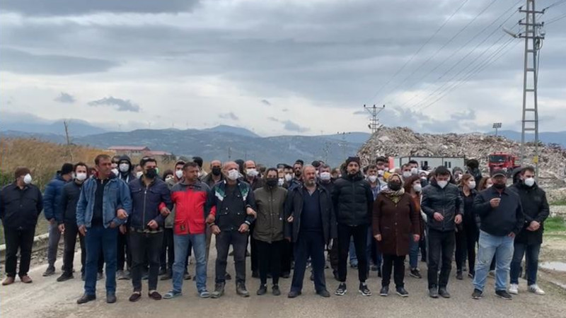 Samandağ halkı moloz dolu kamyonu engelliyor
