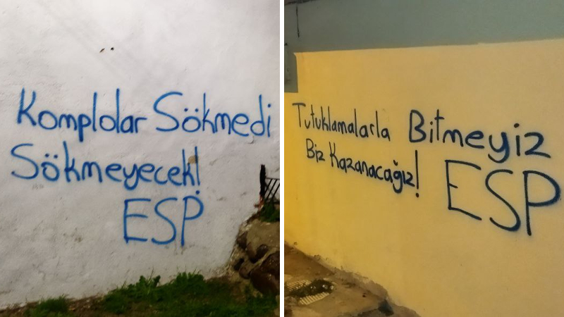 ESP tutuklamalara karşı İzmir'de yazılama yaptı