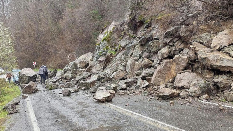 Ordu'da heyelan kara yolunu ulaşıma kapattı