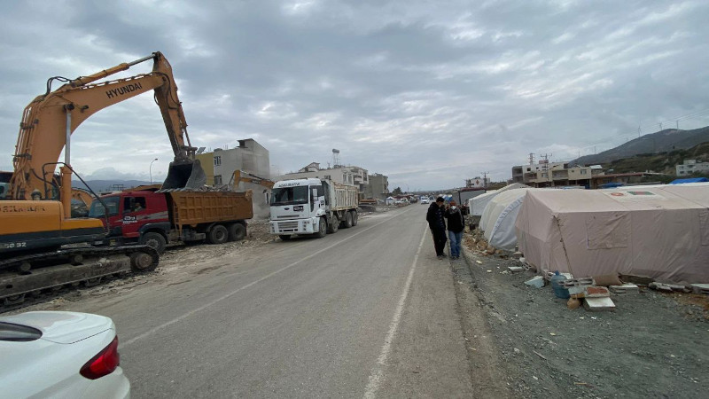 Çadırların yanındaki enkazlar korumasız kaldırılıyor