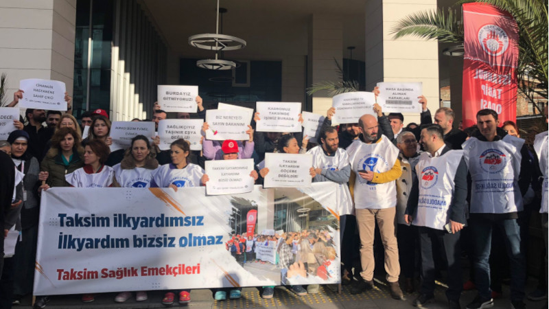 Sağlık emekçileri Taksim'de bir araya geldi