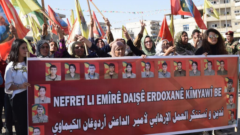 Rojava'da binler Türk devletinin kimyasal silah saldırılarına karşı alanlara çıktı