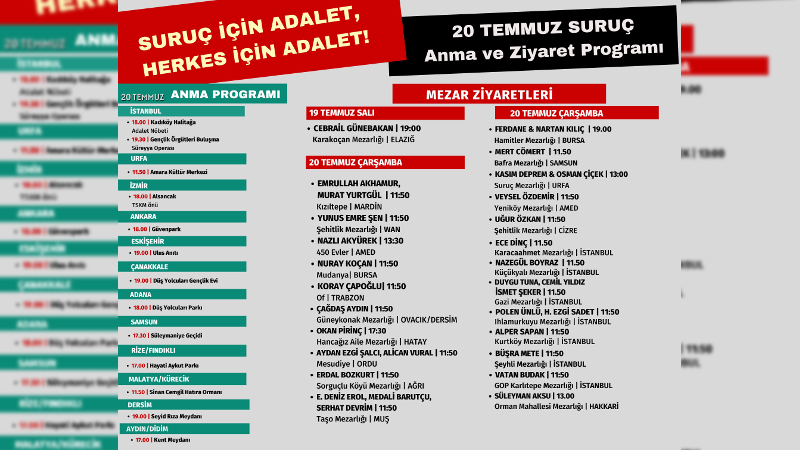 Suruç şehitleri pek çok farklı kentte anılacak