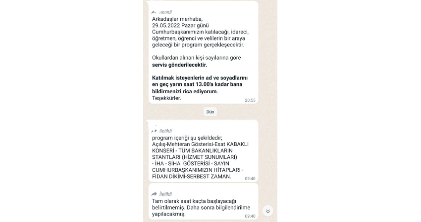 Öğrenci ve velilere Erdoğan'ın mitingine katılma zorunluluğu