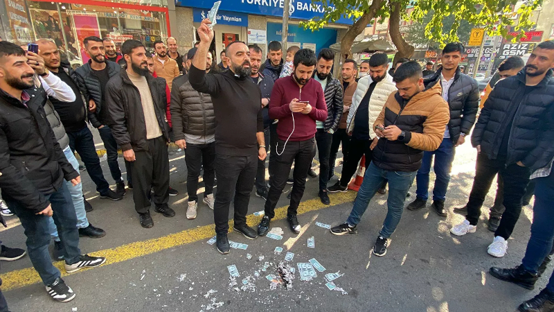 Esnaf doların yükselişini sahte dolar yakarak protesto etti