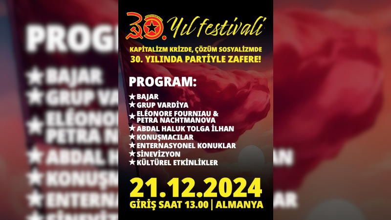 30. Yıl Festivali Tertip Komitesinden 'Kapitalizm krizde, çözüm sosyalizmde' gecesine çağrı ETHA 20 Ekim 2024 Pazar
