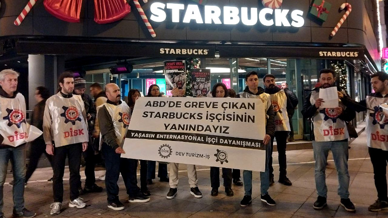 Direnen Starbucks işçileri selamlandı: Örgütlenme ve mücadele örneği İSTANBUL - ETHA 10 Aralık 2025 Çarşamba