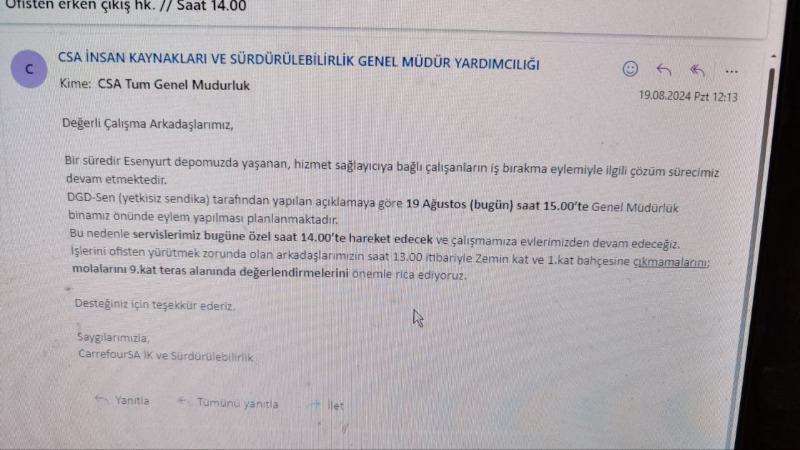 CarrefourSA direnişçilerinden Gebze depo işçilerine ortak mücadele çağrısı İSTANBUL - ETHA 17 Ağustos 2024 Cumartesi